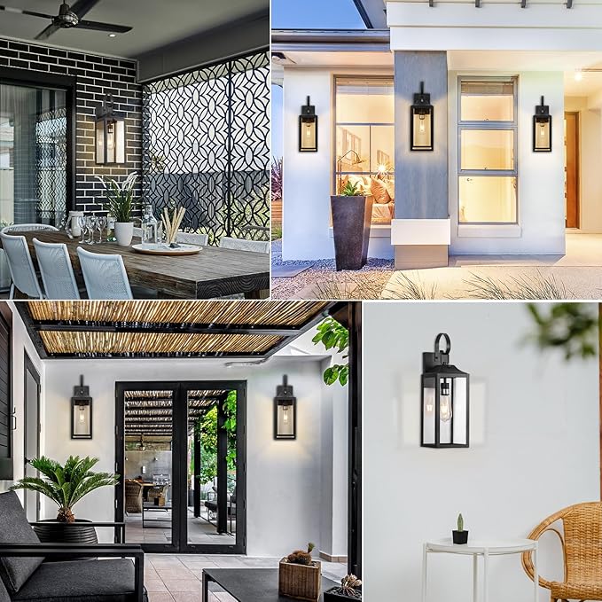 - 【Easy Installation & Wide Application】The glass of this outdoor wall lamp is pre-assembled, and all mounting accessories are included for quick installation. Detail install operations please refer to the user's manual. The thoughtful open-bottom design makes it particularly easy for bulb replacement. This dawn till dusk sensor wall sconce can apply on the porch, patio, garage, courtyard, garden, street, and hallway.
