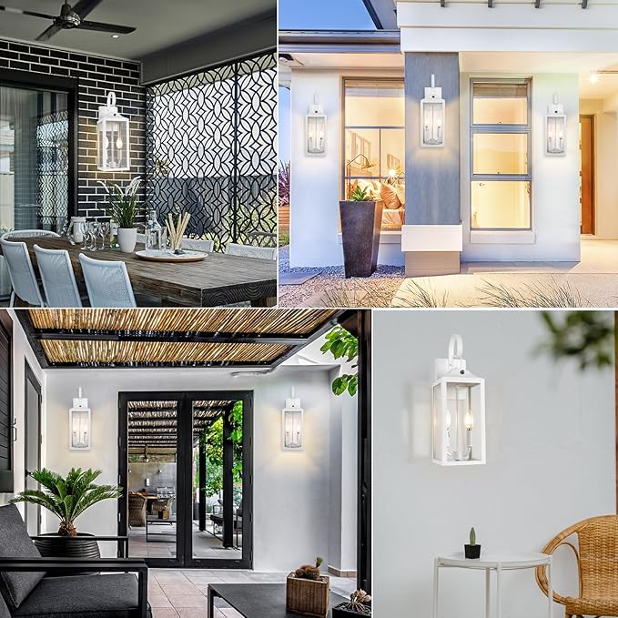 - Waterproof & Weather Resistance: The modern outdoor dusk dawn light is crafted from premium metal, and will not get rusty or corrosive for years of use. It boasts excellent performance in weather resistance, with an IP65 waterproof rating, the extra large outside porch wall light for house can withstand all kinds of bad weather conditions. Even under rain, snow, or ultra-high or low temperatures, you can trust the white outdoor wall lantern to keep new.