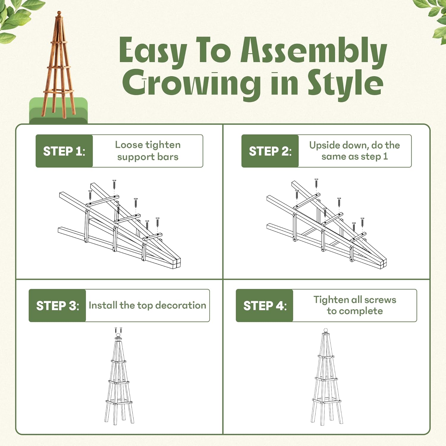 - π WEATHER-READY GARDEN TRELLIS: The garden trellis for climbing plants withstands outdoor conditions effortlessly; The obelisk trellis design ensures sturdy plant support while enhancing the style of any garden