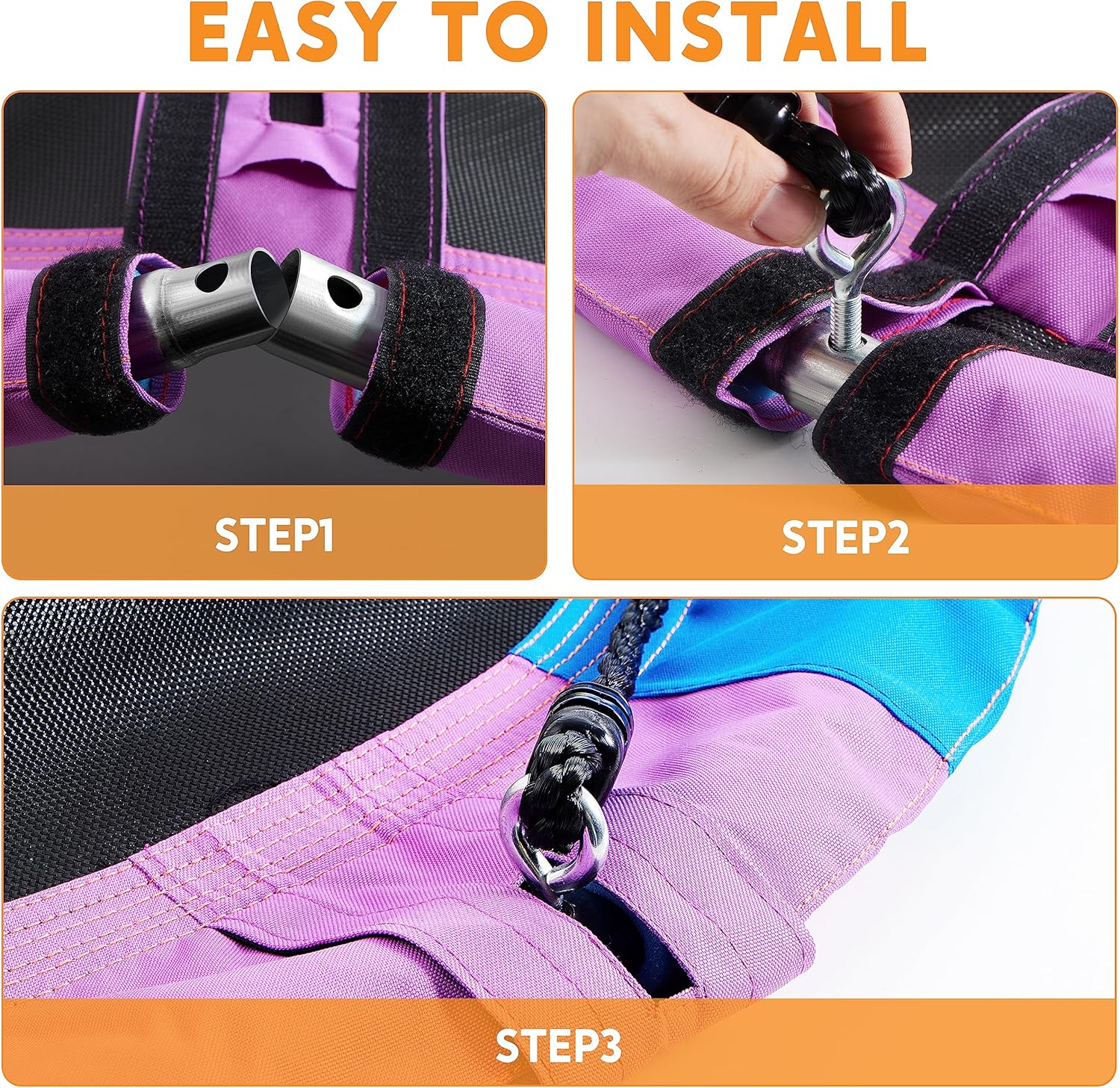 - SUPER VALUE.A main wrench, 2 carabiners, 2 additional straps designed to hang the tree swings for kids on higher tree branches, and the assembly instructions are included in this 40 inches saucer tree swing for kids.