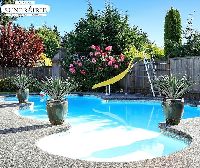 - 【DURABLE, FULL- SIZED ARTIFICIAL FLOOR PLANT】: Our classic fake agave is made comes in a handsome matte black pot covered with natural river pebbles; It looks great indoors and can also be placed outdoors because it’s made from UV resistant materials and is fully waterproof. The rich, green leaves go well with any style in your home or yard.