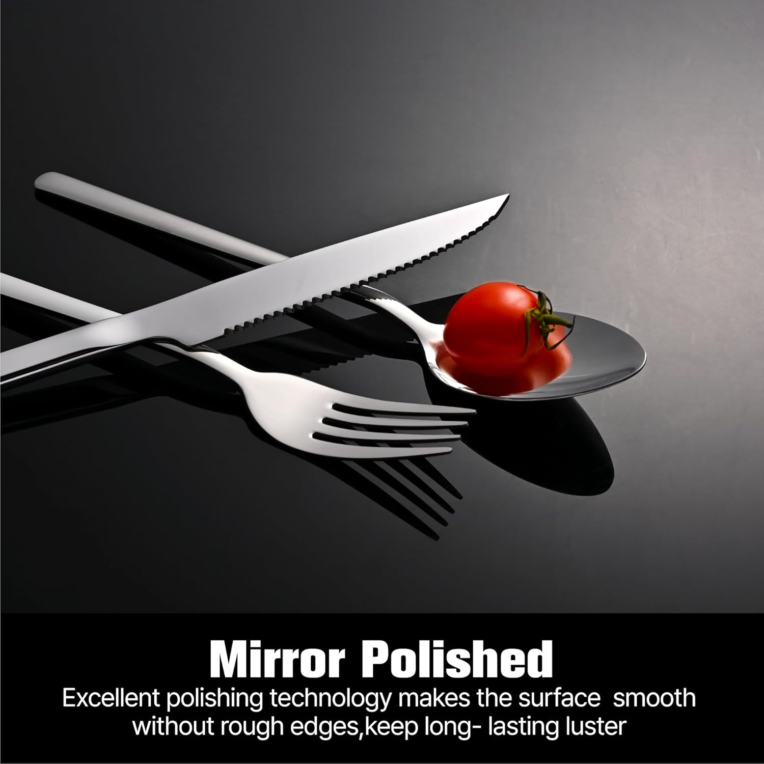 KINGSTONE 24-Piece Silverware Set with Steak Knives, Flatware Set for 4, Stainless Steel Tableware Cutlery Set for Home Restaurant, Mirror Finish,Modern Design