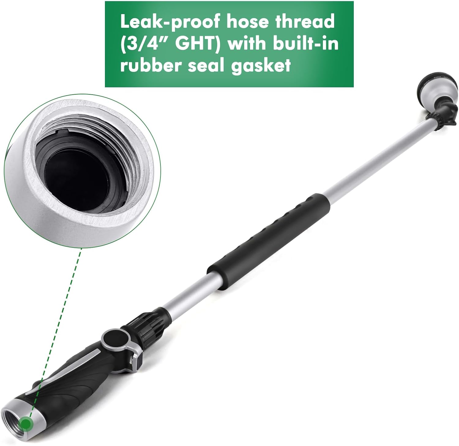 - 【Fits All Standard Garden Hoses】Threaded with the 3/4” Garden Hose Thread (GHT), this water hose wand fits all standard garden hoses. It is also equipped with rubber seal gasket, perfect to attach on your garden hose and provide an extreme water-tight seal, make the nozzle leak-free and save unnecessary water.
