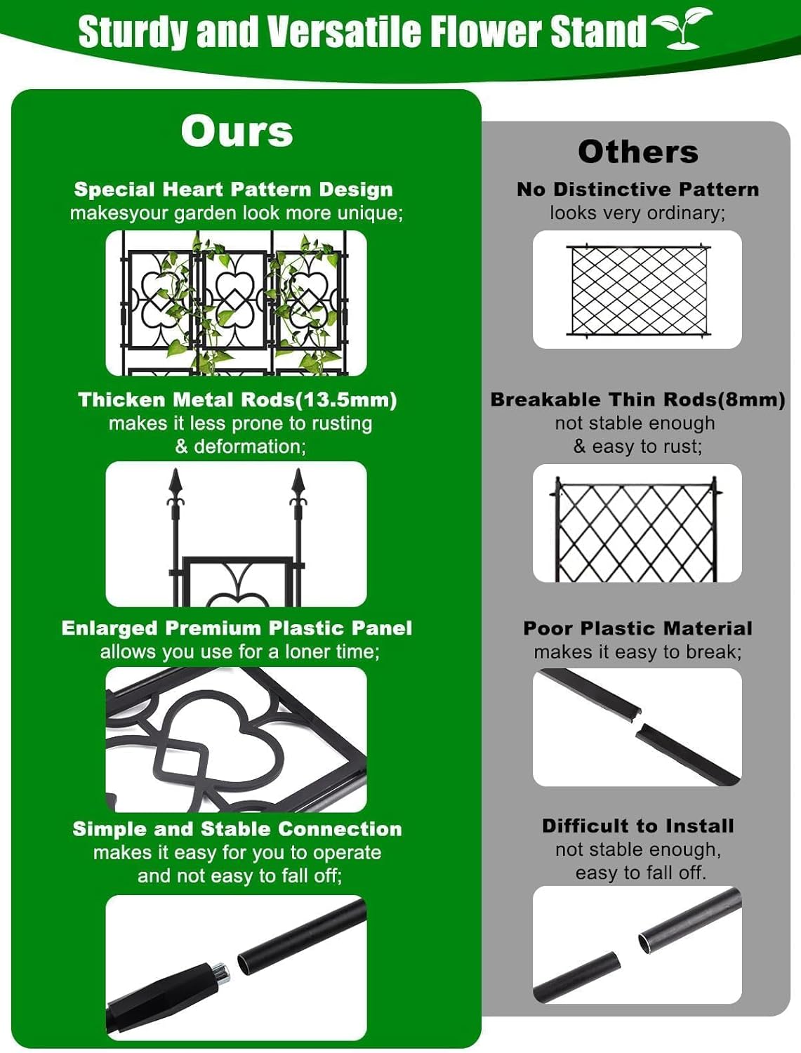 - 🌷 6.6FT Growing Paradise For Plants: This garden trellis set adopts heart-shaped grid design, more climbing space available to provide a freer growing environment for plants. With anti-corrosion design, no need to worry about rusting in the rain.