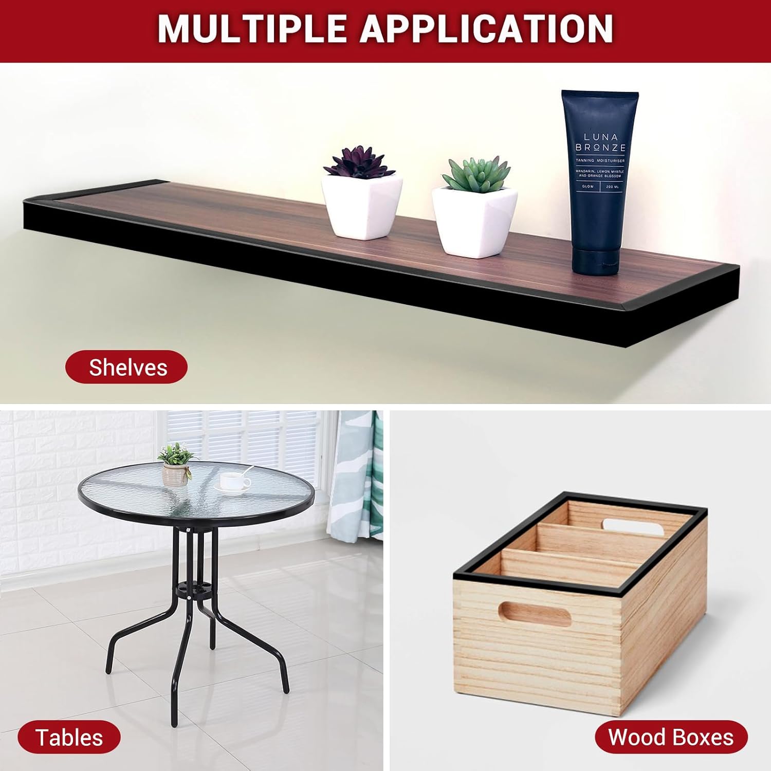 - Strong Adhesive- Our edge trim has adhesive on 3 sides, compared with other edge trim and iron installed edge banding which only have 1 side of adhesive, our product is much stronger.