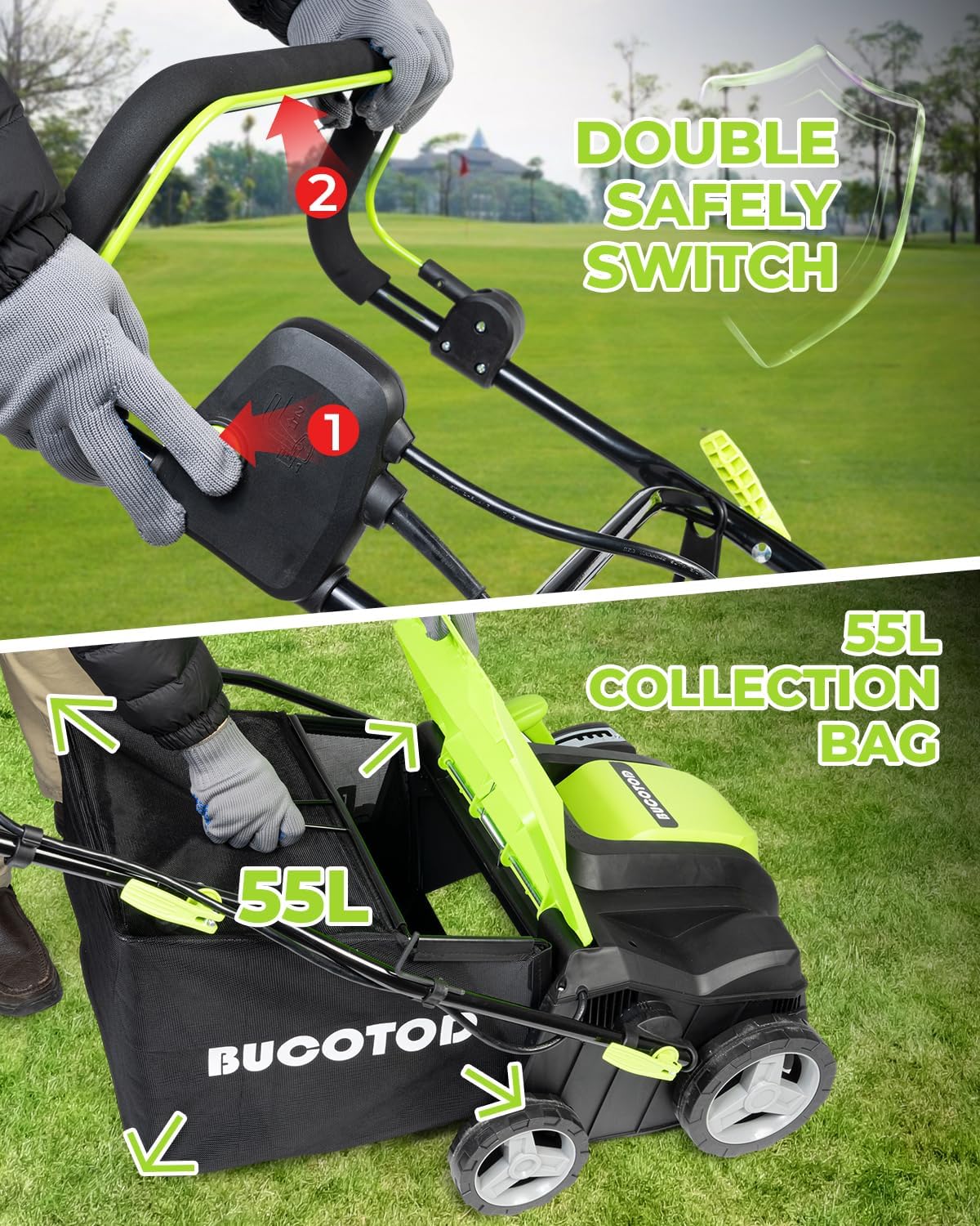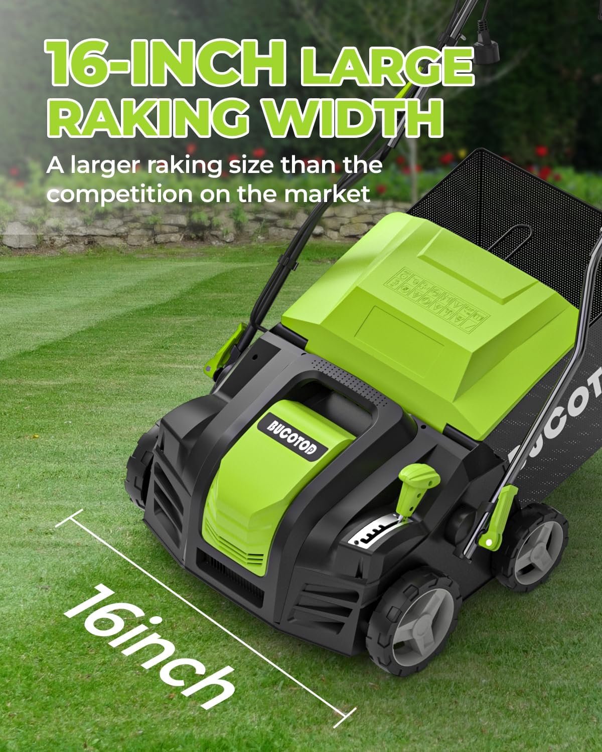 - SAFE & EASY OPERATION: BUCOTOD dethatcher scarifier featuring two switches to prevent accidental starts. Operating is a breeze β simply press to start. The ergonomic design 3-position adjustable rod caters to users of different heights, meeting the diverse needs of every family. Enjoy the ease of use without compromising on safety.