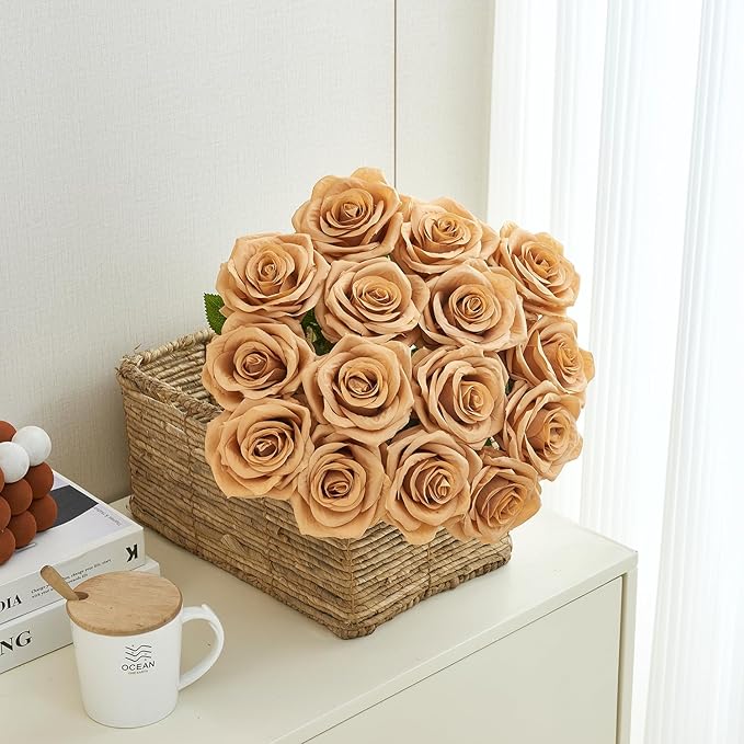 15pcs Fake Roses Artificial Silk Flowers Faux Rose Flower Long Stems Bouquet for Arrangement Wedding Centerpiece Party Home Kitchen Decor