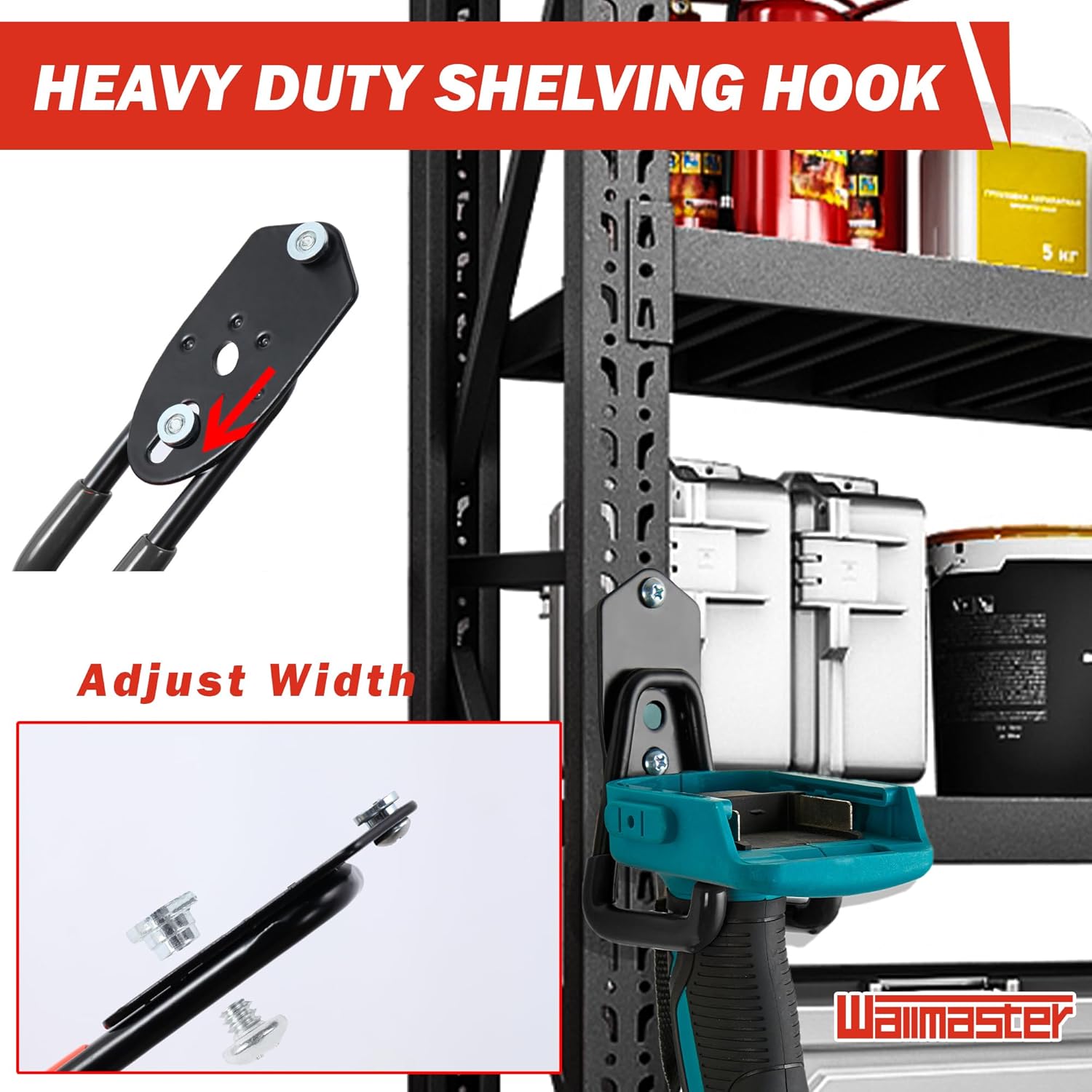 Wallmaster Garage Hooks Organizer Kit,12 Pack Adjustable Heavy Duty Shelving Hook,Wall Mount Utility Steel Garage Organization (Black)