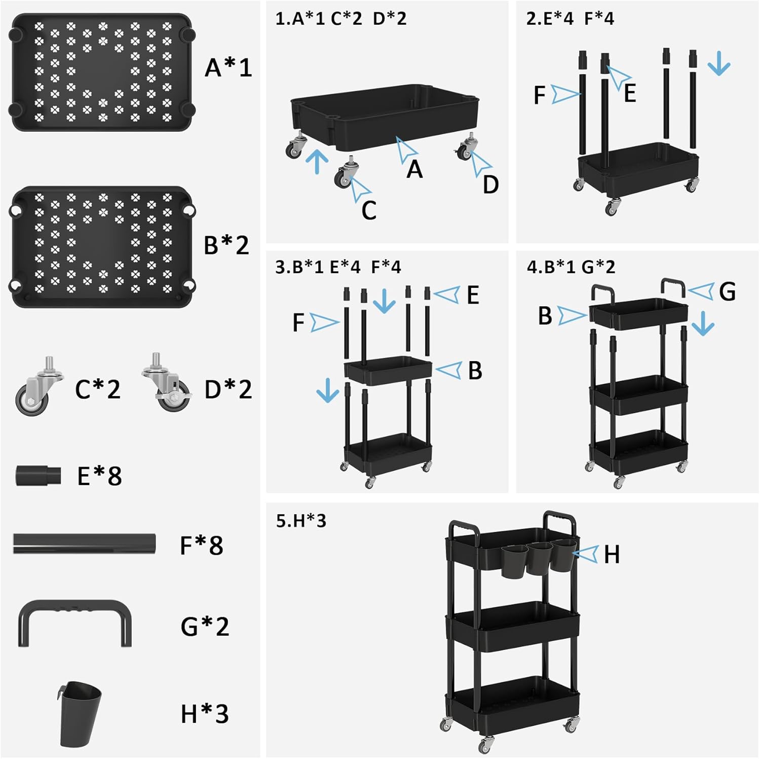 - 【Multifunctional Storage】Rolling utility carts can add extra storage space, 3-tier, classifies it carefully, and are widely used in multiple locations.In the kitchen, store food, seasonings, spice bottles, crisper boxes, paper bags, gadgets.In the living room, store snacks, teacups, books, ornaments.In the bathroom, store toiletries, paper towels, aromatherapy.Besides, it can also be placed in bedrooms, laundry rooms, baby rooms, offices, classrooms and balconies.