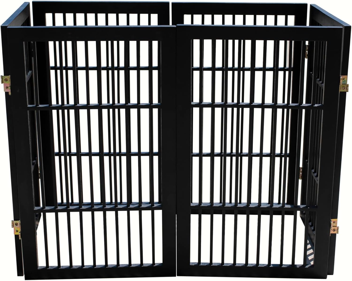 Pet Dog Gate Strong and Durable Freestanding Folding Acacia Hardwood Portable Wooden Fence Indoors or Outdoors by Urnporium (Black Pet Gate, 6 Panel 30" Tall)