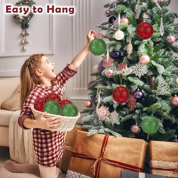 - Special Glitter Design - This big christmas tree ornaments has charm look, features a classic bead shape, it covered glitter finish and adorned with glitter sequins, presenting a shiny and elegant visual effect and bring a strong festival atmosphere to your home. We offer 14 different classical colors of large christmas ornaments allows you to decorate your Xmas tree quickly and arrange your Christmas interior scene