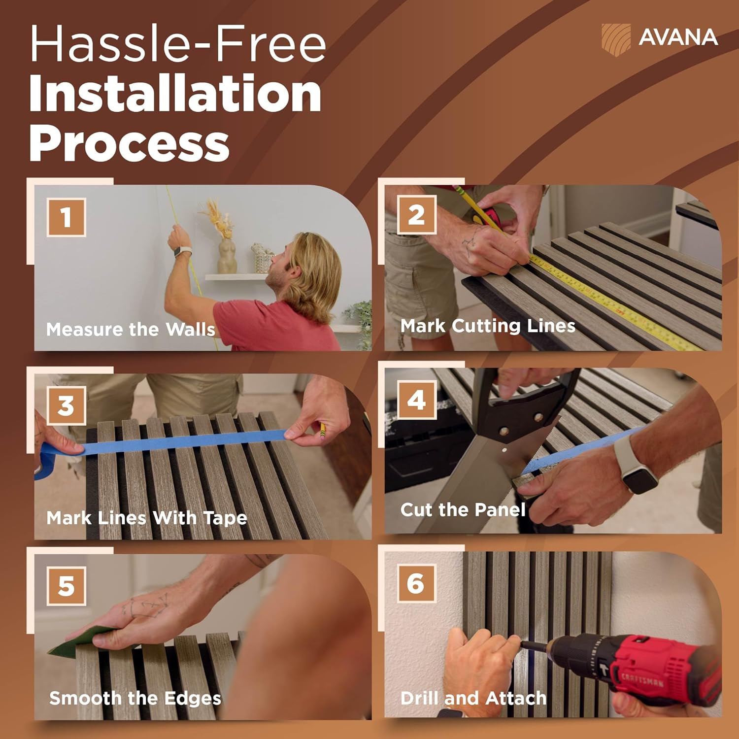 - Effortless Installation — Simplify your journey to acoustic excellence with Avana panels wall decor. Enjoy the convenience of quick and easy installation of wood panels. Whether mounted on walls or ceilings, these wall wood panels bring instant acoustic enhancement to your space. Bid farewell to complex installation processes and embrace a hassle-free experience with Avana wall soundproofing panels that save you time, ensuring your acoustic journey begins with our wall slats panel.