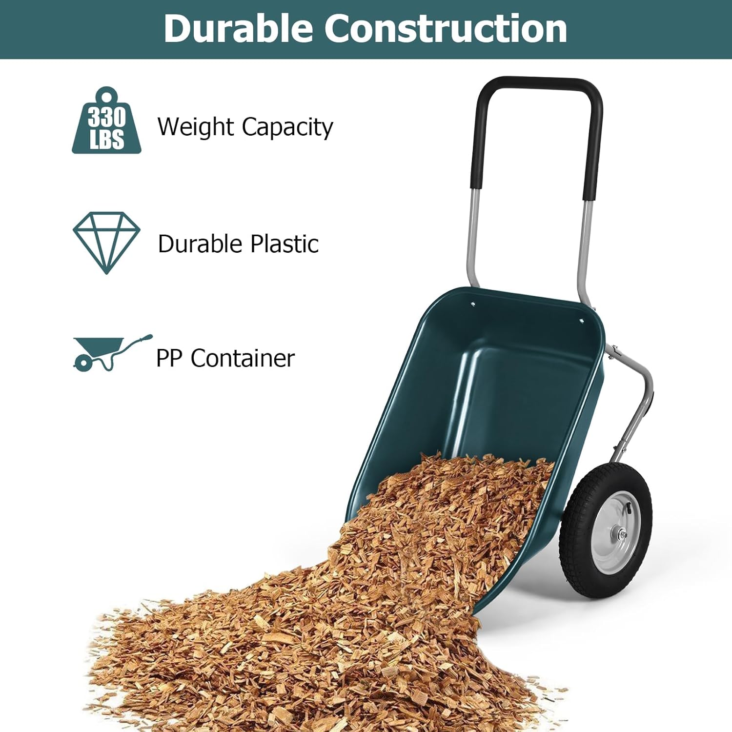 ERGOMASTER Dual-Wheel Wheelbarrow, Home Utility Garden Cart, 330 LBS Capacity, Large Heavy Duty Yard Cart for Gardening & Planting, Lawn, Farm, Construction Site, Green