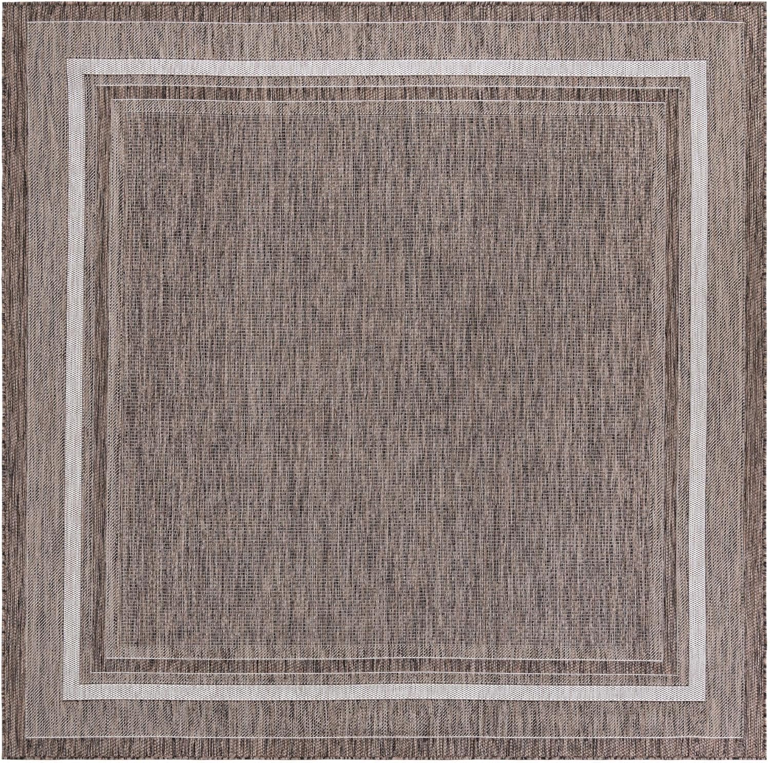 Unique Loom Outdoor Border Collection Area Rug - Soft Border (7' 10" Square Brown/Ivory)