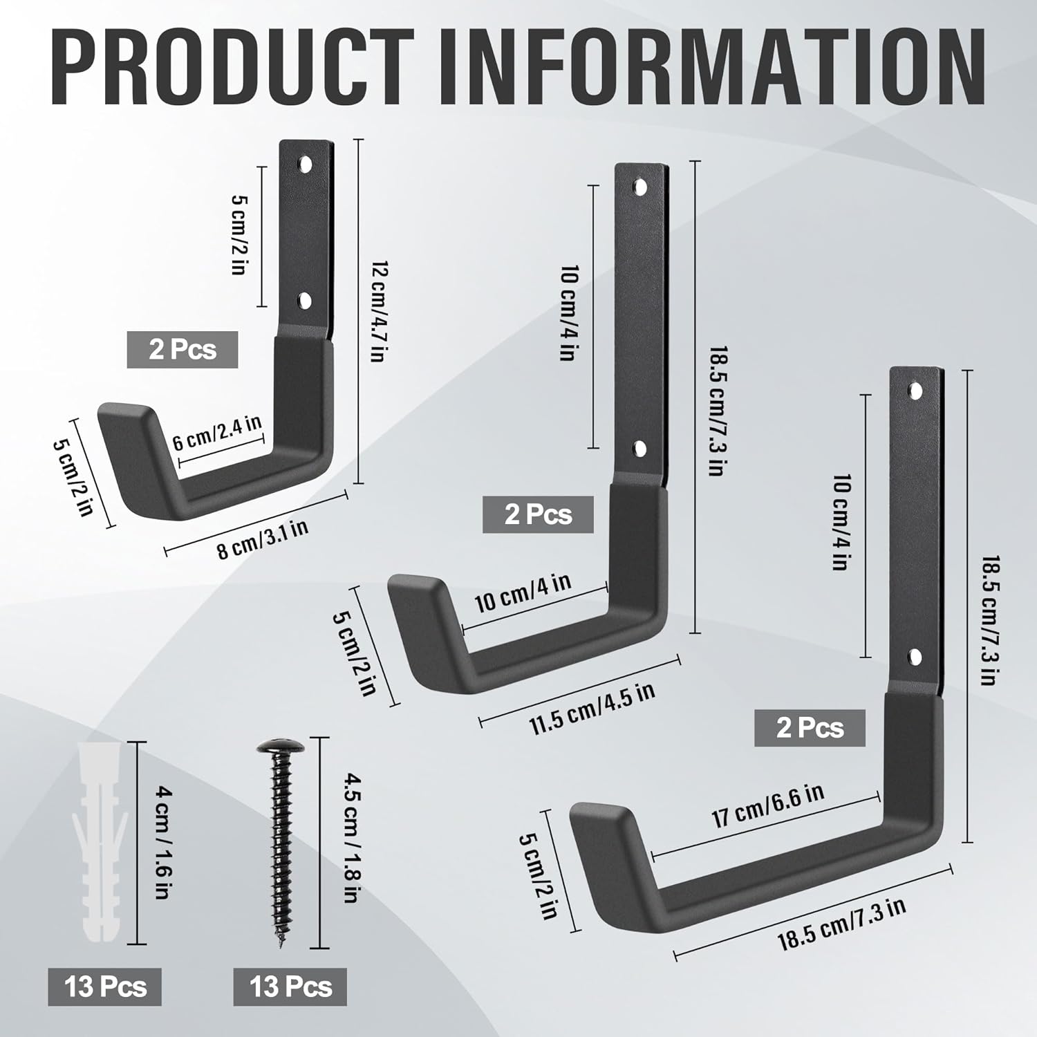 - 【Multi Purpose & Universal】This storage hook is a flexible wall mounting solution for garage, garden, and workshop. It solves most of your needs and keeps you from clutter, and suitable for different walls, such as wood walls, cement walls, brick walls and other walls.