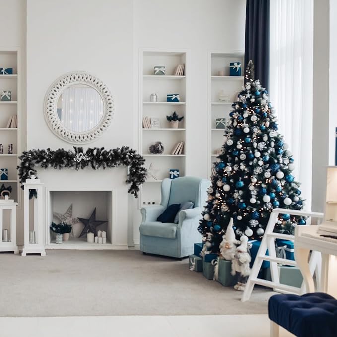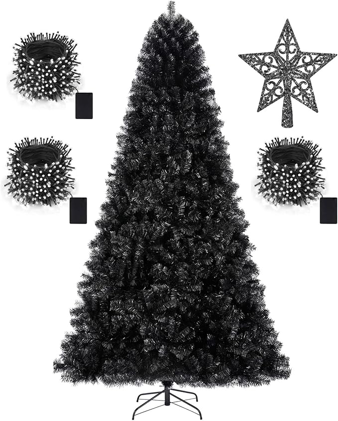 - 🎄A Variety of Accessories: Buy our 7.5ft outdoor christmas tree black without the effort of matching the baubles, we've got you covered! Our set includes: 1pcs tree top star 7.8in*7.8in, 3set of battery box powered300 LED lights string(Batteries not include)each 1set 100 LED 34.4ft foot string of lights! One purchase for perfect use, saving your precious time!