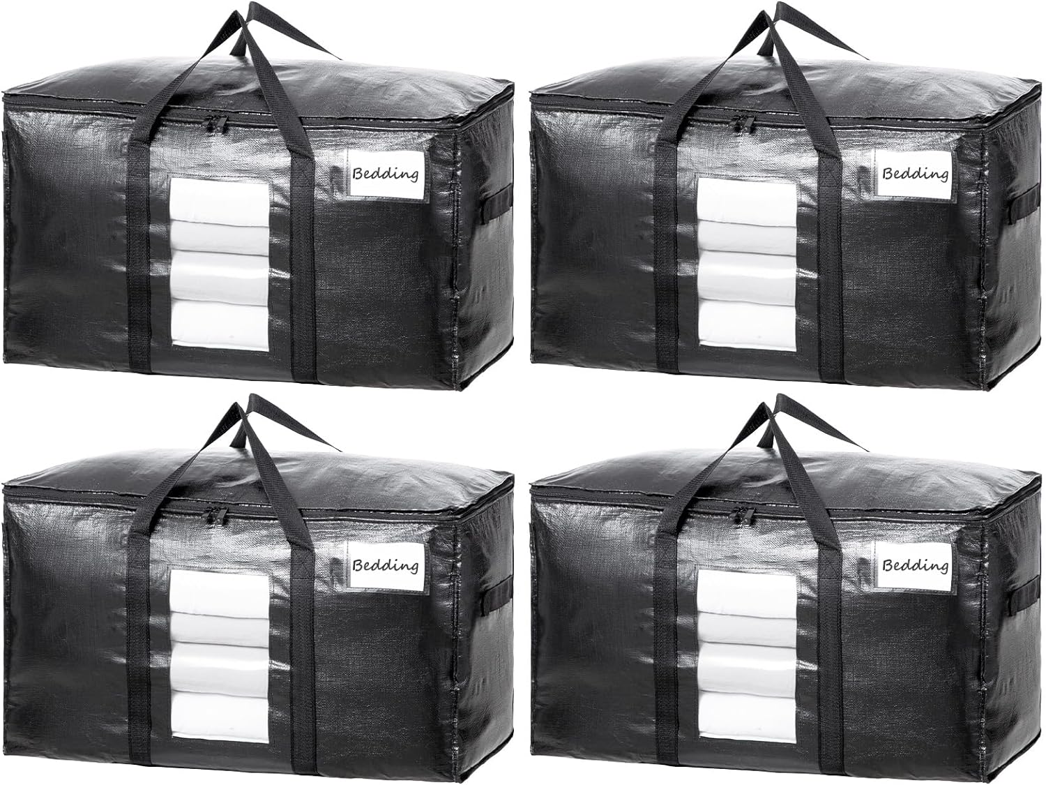 TAILI Extra Large Moving Bags, 4 Pack Black Heavy Duty Totes For Storage with Visible Window, Wrap Around Handles, Storage Bags for Space Saving, Alternative to Moving Boxes