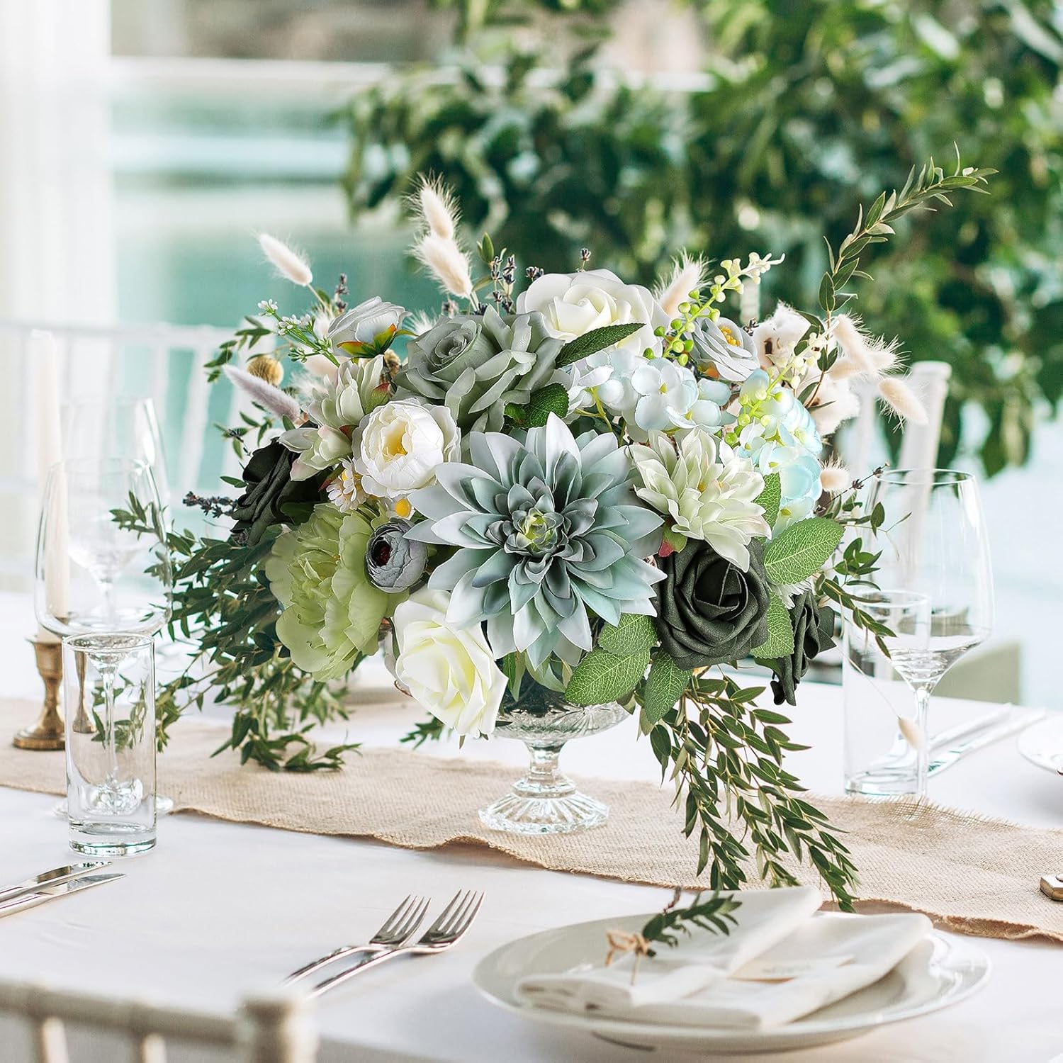 AGIRL Artificial Flowers Combo Silk Mix Green Fake Flower with Stems for DIY Wedding Bouquets Centerpieces Arrangements Table Chair Decor Baby Shower Home Decor (Sage Green)