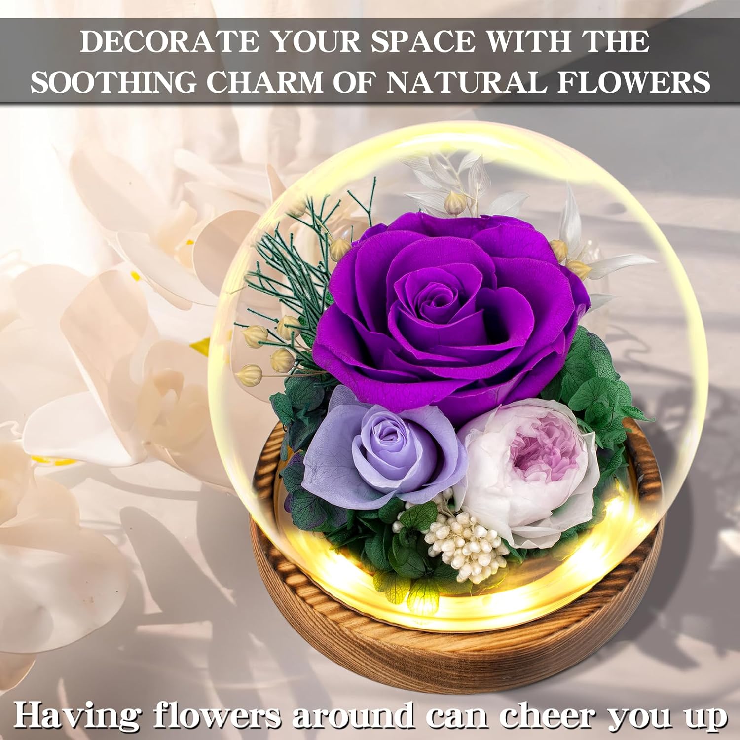 - ๐ ๐จ๐ซ๐๐ฏ๐๐ซ ๐ ๐ฅ๐จ๐ซ๐๐ฅ ๐๐๐ฌ๐ญ๐ข๐ง๐ ๐๐๐๐ซ๐ฌ: Real flowers that stay fresh for 3-5 years with zero upkeep? You got it! Our preserved flowers keep their color and softness, making lasting beauty effortlessโperfect for the busy yet romantic at heart.