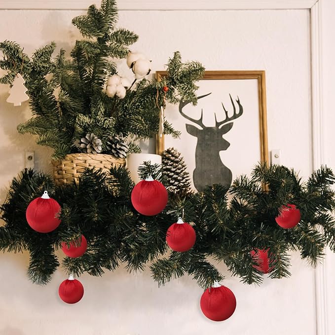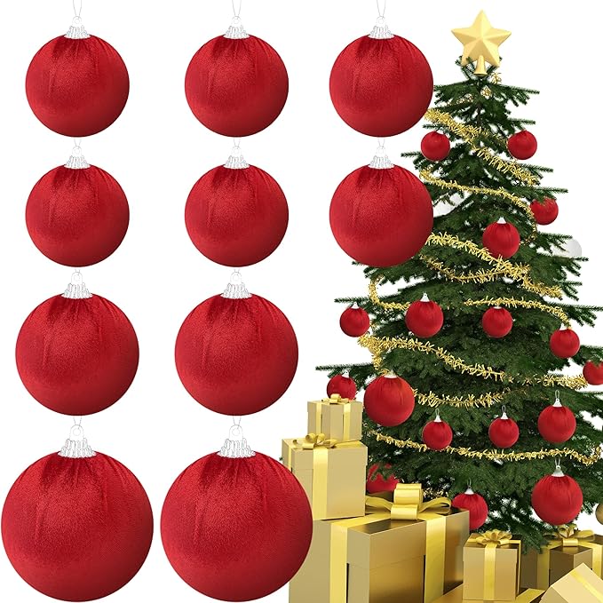 Gresorth 10 Pcs Red Velvet Christmas Ball Ornaments Flocked Hanging Ball Lightweight Decoration Xmas Tree Wedding Indoor Display