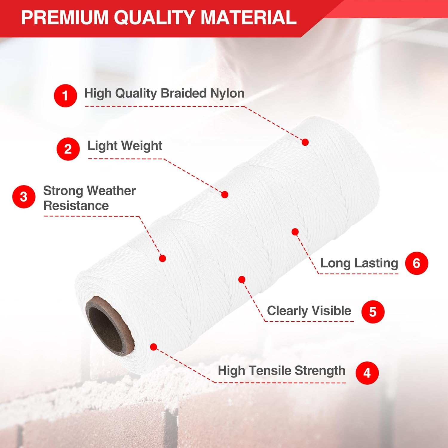 - Multiple Applications: Nylon Mason Line for Outdoors activities & Home use such as used every day by the professional brick mason, can give you a straight line for accuracy when laying bricks or blocks. Used for gardening to make climbing strings. Hanging picture frames, and bundling loose items for storage