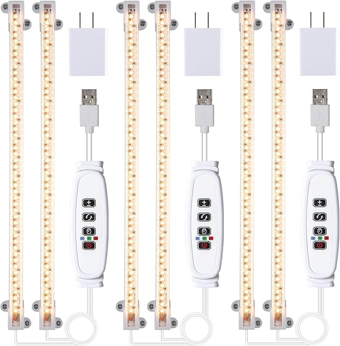 LED Grow Light Strips, Full Spectrum 3500K Plant Growing Lights for Indoor Plants, Plant Lamp for Hydroponics Succulent with 3/9/12H Timer, 10 Dimmable Levels, 3 Head 13 Inches (2 Strip 3 Pack)