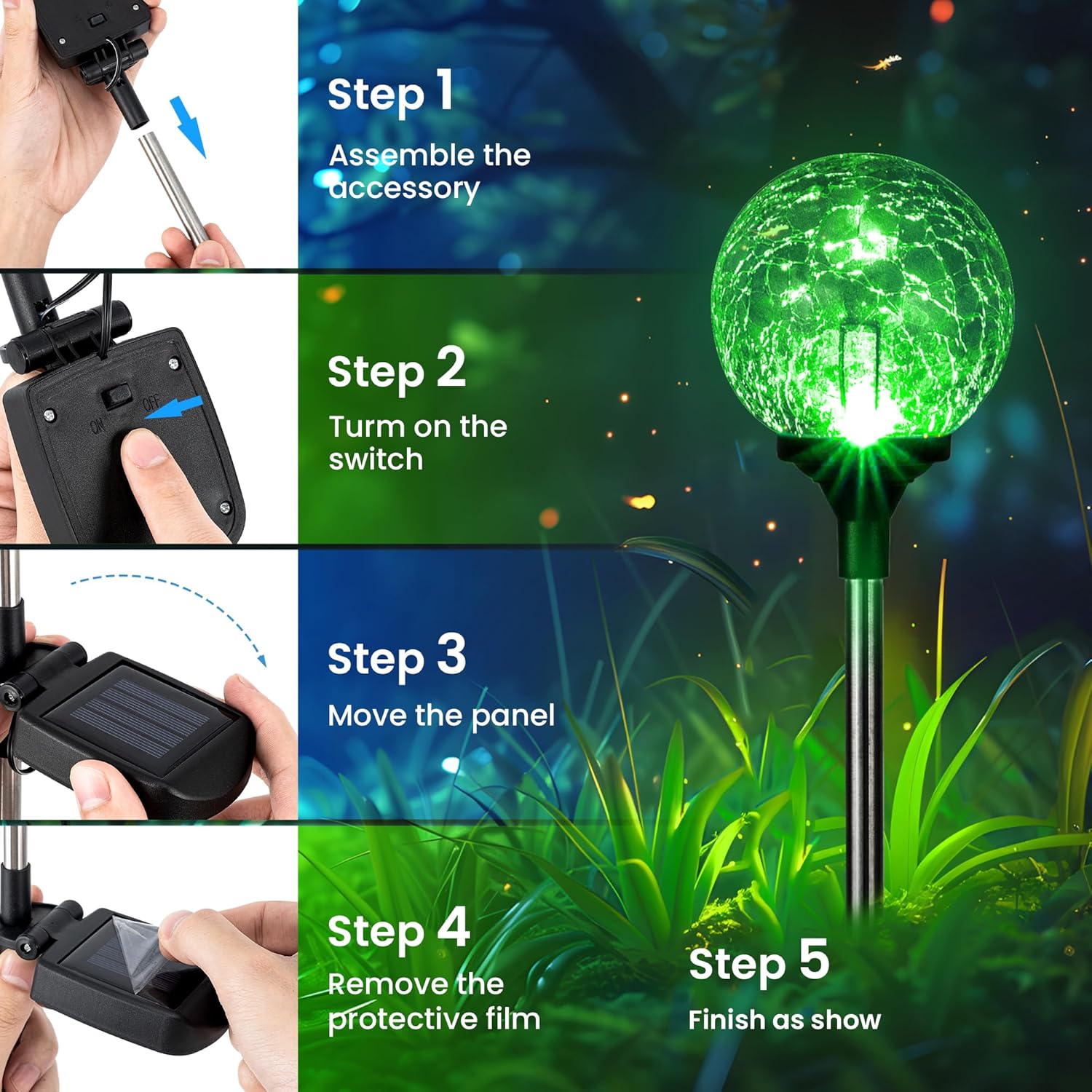Gigalumi Solar Garden Lights 6 Pack, Solar Globe Lights Outdoor Waterproof, Solar Lights Outdoor Decorative for Yard, Multi-Colored Changing Garden Globes Cracked Glass Ball with LED LightsB0D14NL7B9