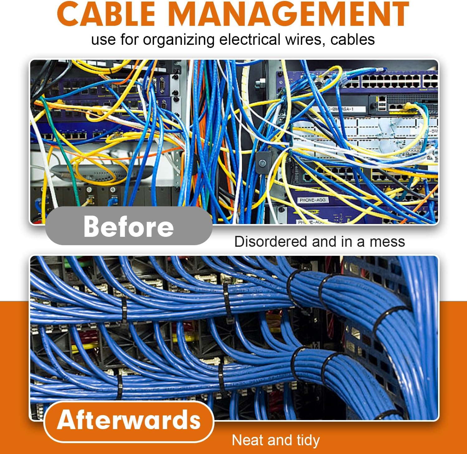 - PREMIUM QUALITY MATERIAL: Cable ties made of industrial strength nylon 66 material, UV-resistant, sturdiness, durability and weatherproof, outdoor in direct sunlight application is not an issue