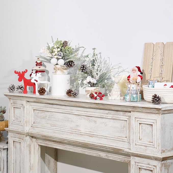 - CHRISTMAS DECORATIONS: Each small Christmas tree is adorned with exquisite decorations such as artificial berries and pine cones combined with artificial green plants, and each small tree has a rustic style base with a bow, sturdy and fashionable. Whether placed on the coffee table in the living room or on the desk in the bedroom, it can instantly bring a warm Christmas atmosphere.The product has shedding of flocking powder and sawdust, which is a normal phenomenon,