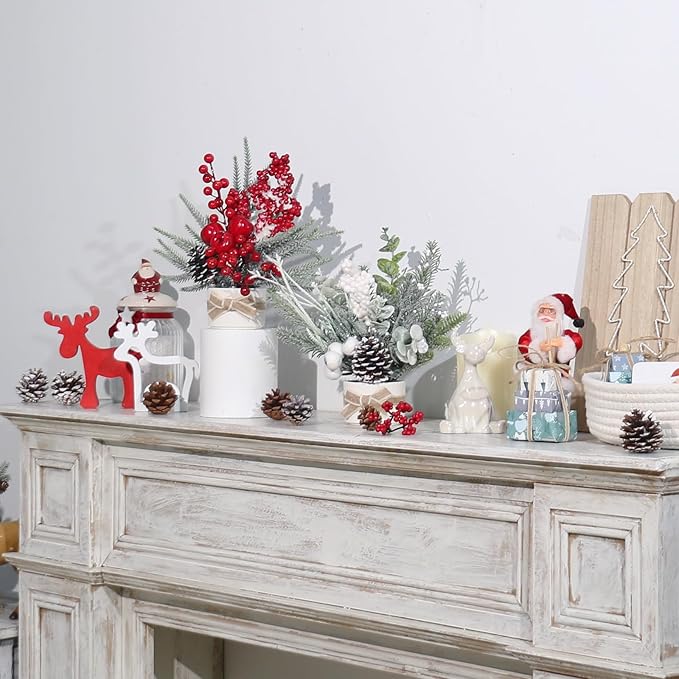 - CHRISTMAS DECORATIONS: Each small Christmas tree is adorned with exquisite decorations such as artificial berries and pine cones combined with artificial green plants, and each small tree has a rustic style base with a bow, sturdy and fashionable. Whether placed on the coffee table in the living room or on the desk in the bedroom, it can instantly bring a warm Christmas atmosphere. The product has shedding of flocking powder and sawdust, which is a normal phenomenon,