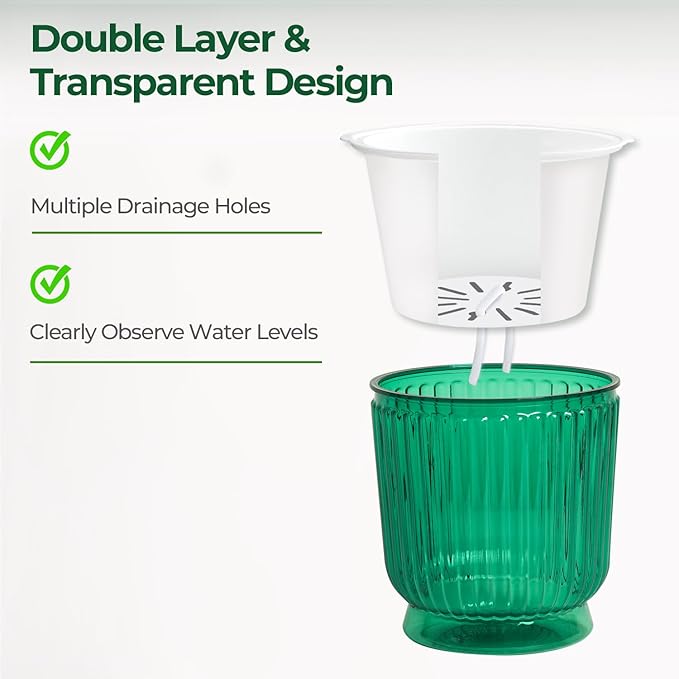 - 🌱【Clear Water Level Indicator】Made from premium PET material, the self watering planter lets you easily track the water level. African violet pots, ensuring your plants always have the hydration they need to thrive, indoor or outdoor