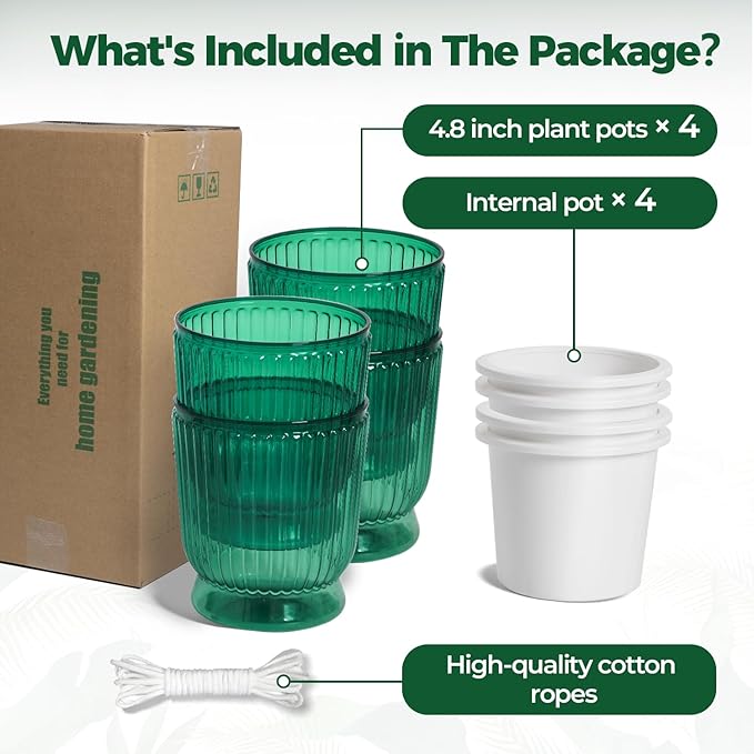 - 🌱【7–10 Days Hydration Self Watering Pots】The double-layer design stores excess water at the bottom, releasing it as needed through the planter cotton rope. T4U 4.8 inch plant pots keep your plants hydrated when you're away