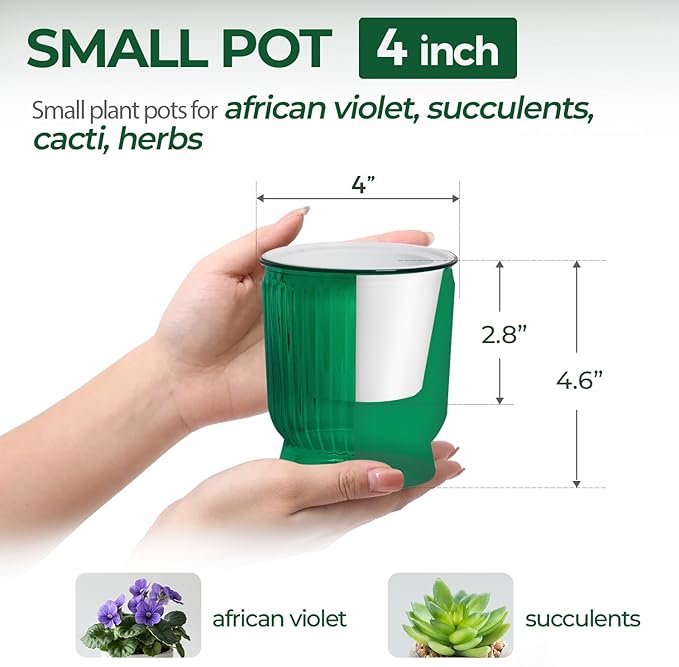 - 🌱【Durable, Non-Toxic Materials】Crafted from high-quality, safe materials, T4U african violet pots are safe for your plants and the environment. Resistant to heat and cold, the self watering pots for are built to last through all seasons