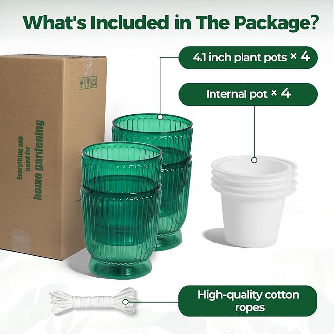 - 🌱【7–10 Days Hydration Self Watering Pots】The double-layer design stores excess water at the bottom, releasing it as needed through the planter cotton rope. T4U 4 inch plant pots keep your plants hydrated when you're away
