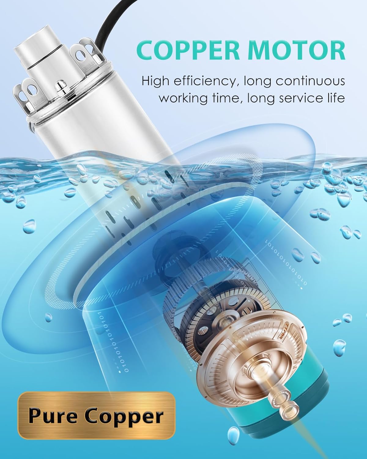 - 32.8 FT POWER CORD: We have equipped this submersible screw pump with a 32.8 ft copper core power cord for use in deeper wells, eliminating the need to extend the wiring for some customers.