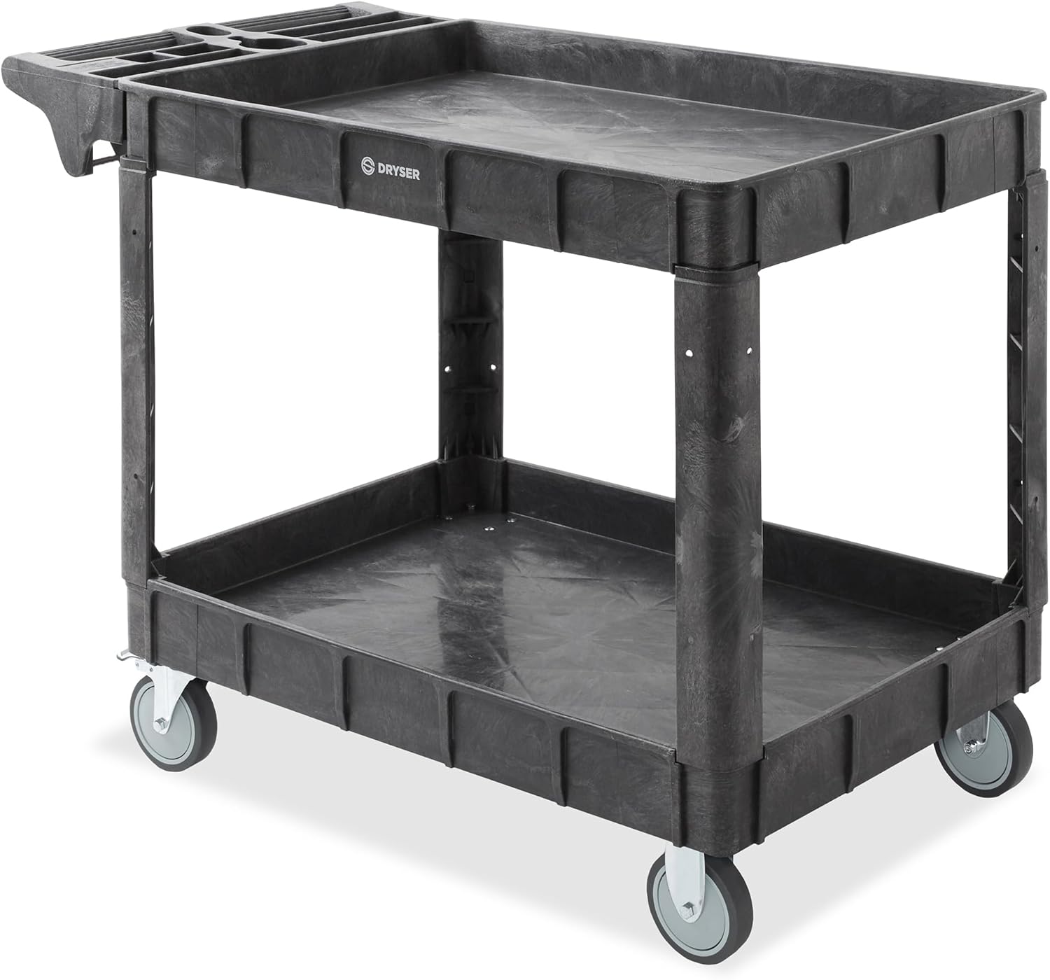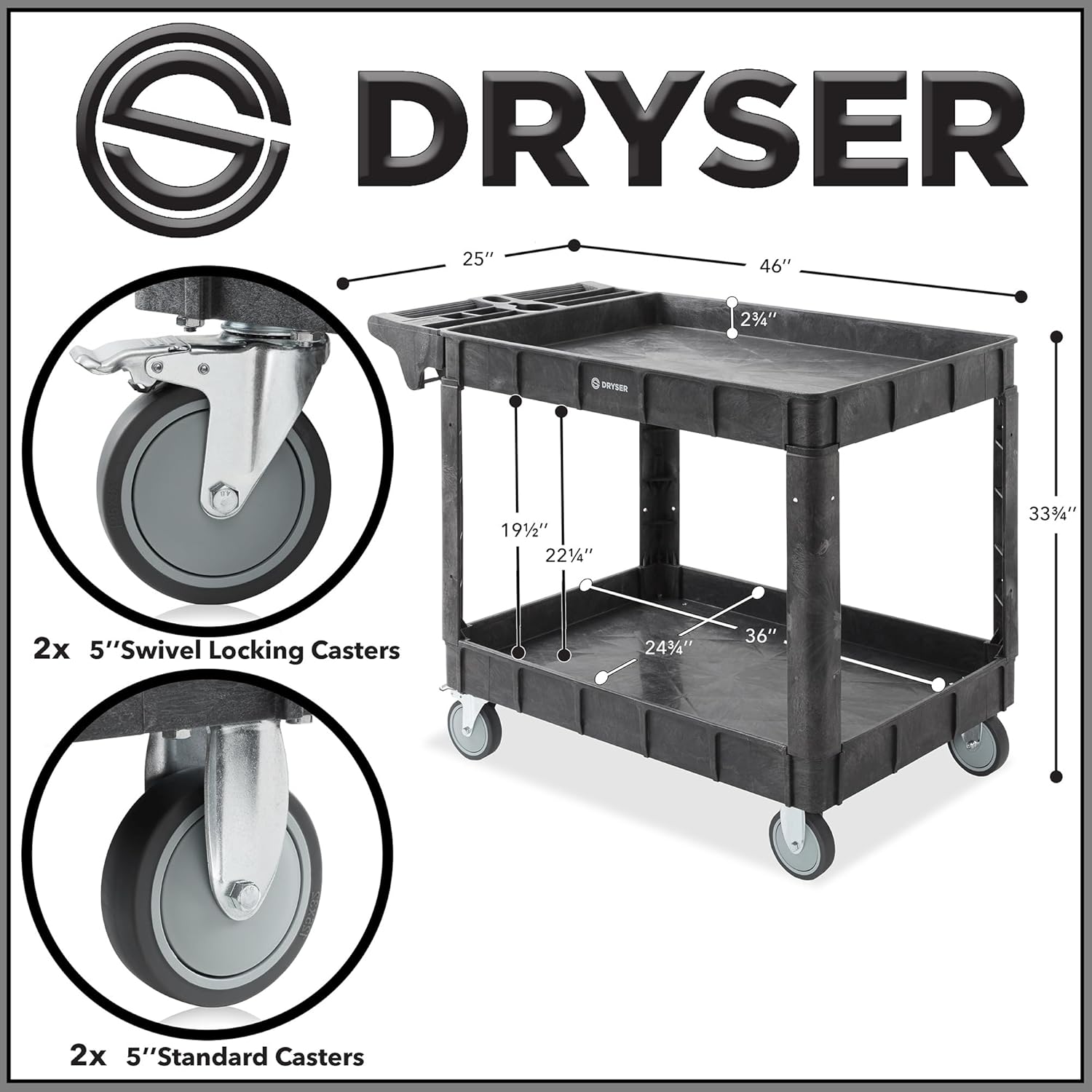 Dryser Utility Cart with Wheels, 46" x 25" Heavy Duty 550 lb. Capacity with Shelves - 2 Tier Rolling Cart with Two 5" Swivel Casters for Warehouse, Garage, Cleaning