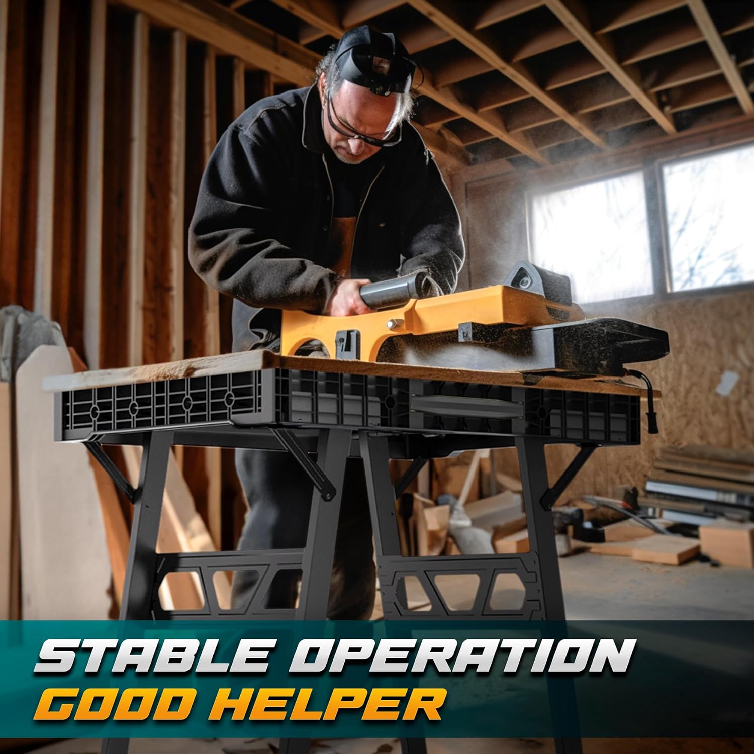 Foldable Work Bench,Easy Step Protable Work Table,34" W x 25" D x 31" H Lightweight Workbench wih 1650LBS,Work Benches for Garage,Work Bench Suitable for Garage,Workshop and Home (Black)