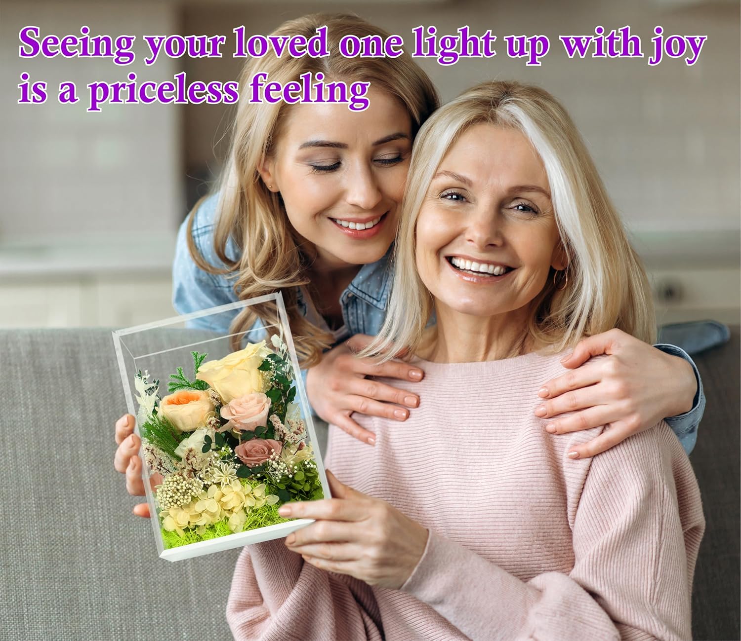 - ♥Natural Flower Decoration Can Do More Than Just Beautify Your Space♥: Having natural flowers in your space not only enhances its appearance but can also have a positive impact on your mood and creativity. The presence of natural elements can make you feel more connected to nature and thus uplift your spirits. Our blooms are natural flowers arranged in a crystal-clear box that can be easily placed and displayed on your table, desk, shelf or wherever you wish to add a natural & beautiful touch.