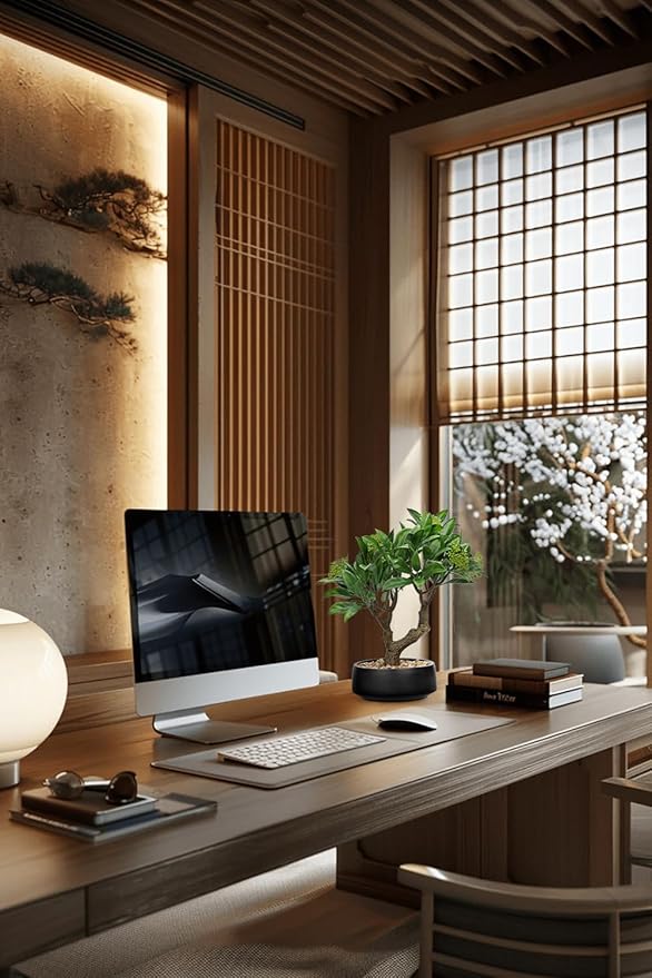 - Small Bonsai Tree - The overall height of the mini bonsai tree is 13", the roots are covered in nature stone to simulate the real soil environment. Built-in cement bed to add weight to the pot so your mini bonsai tree stand steadily. This fake desk plant is perfectly sized to fit in any space. Its compact and lightweight design makes it easy to move and reposition, complementing a variety of indoor settings while adding a touch of refined elegance to your room decor