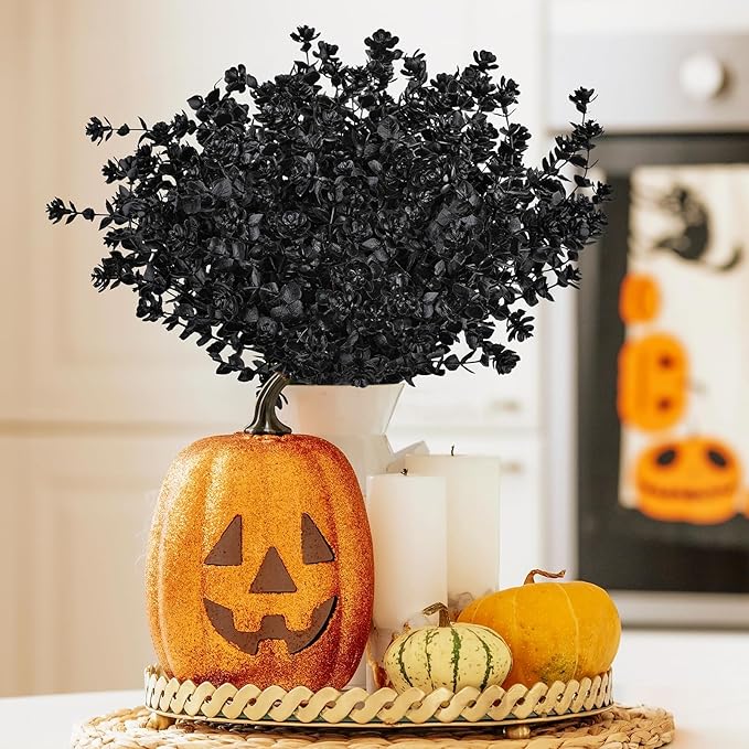 AmyHomie 16 Bundles Black Eucalyptus Artificial Flowers for Outdoor UV Resistant Faux Flowers No Fade Fake Plastic Plants Garden Porch Window Box Decorating