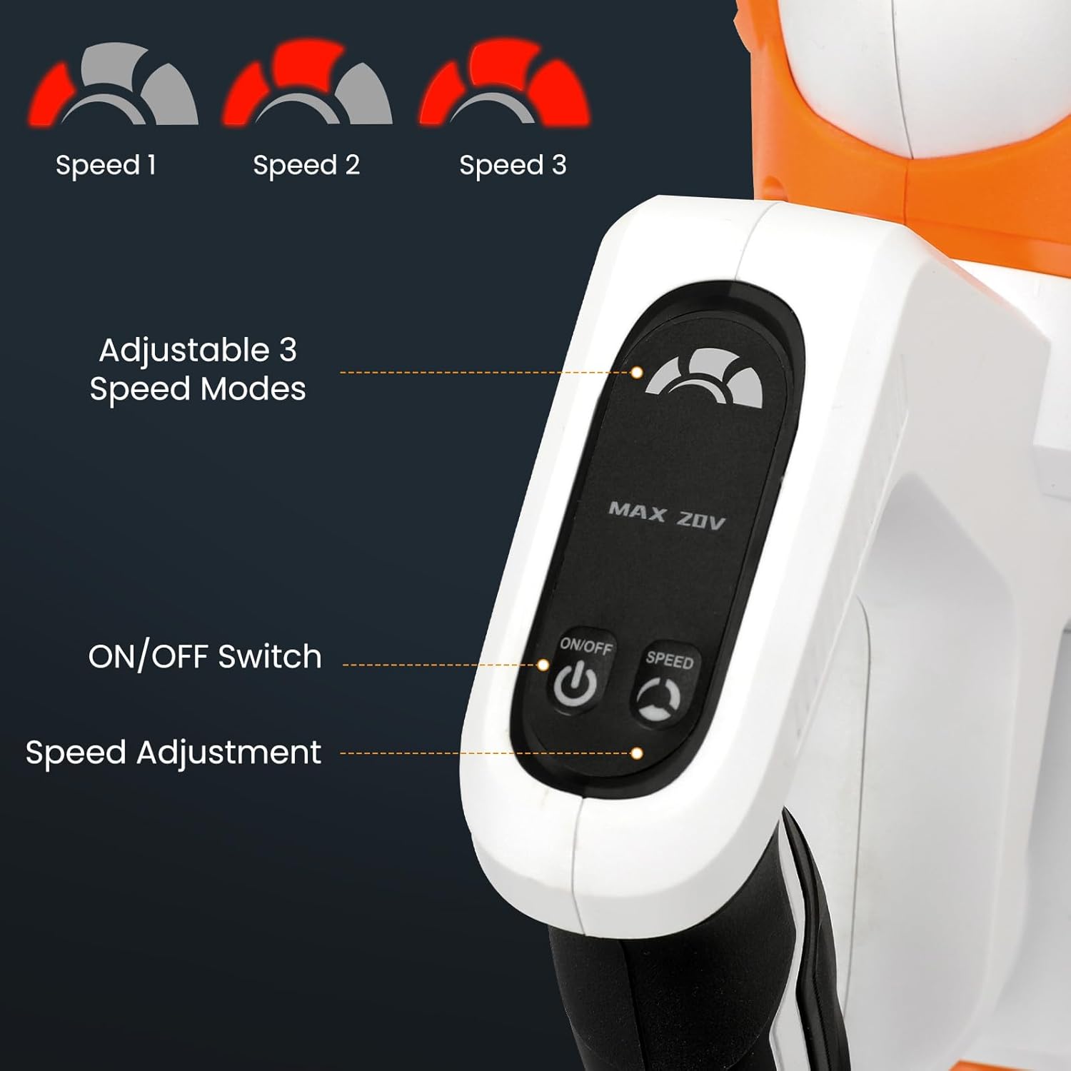 - Experience unparalleled convenience with the LIGO 20V Cordless Leaf Blower's 3-speed memory function, allowing you to easily switch between speeds for different cleaning tasks, and its ergonomic 0-180° handle that adapts seamlessly to ground blowing, ensuring comfort during extended use.