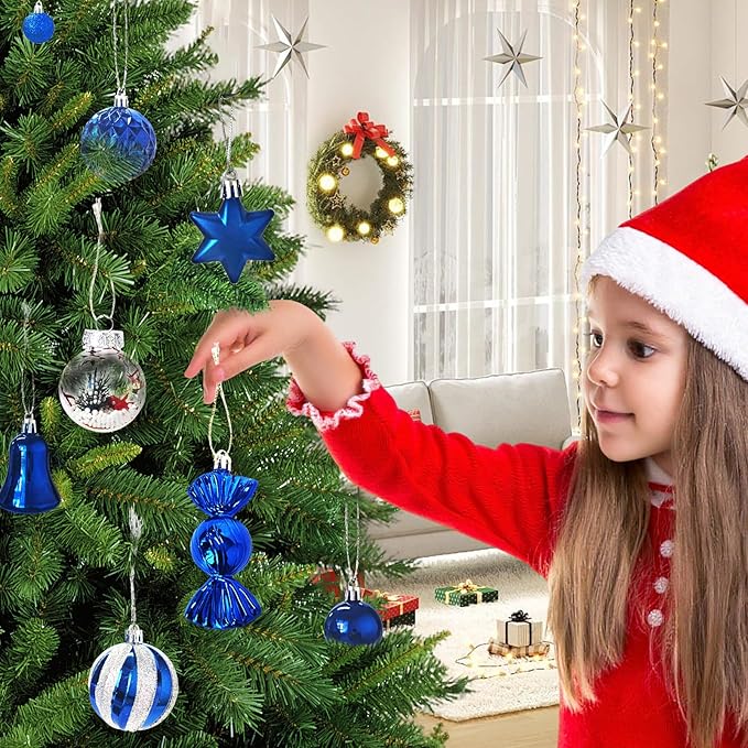 ILLUMINEW 111-Pack Christmas Balls Ornaments,Assorted Shatterproof Christmas Ornaments Set, Luxurious Hanging Pendants Package for Christmas Tree Party Holiday Indoor Decor (111Pcs-Blue)