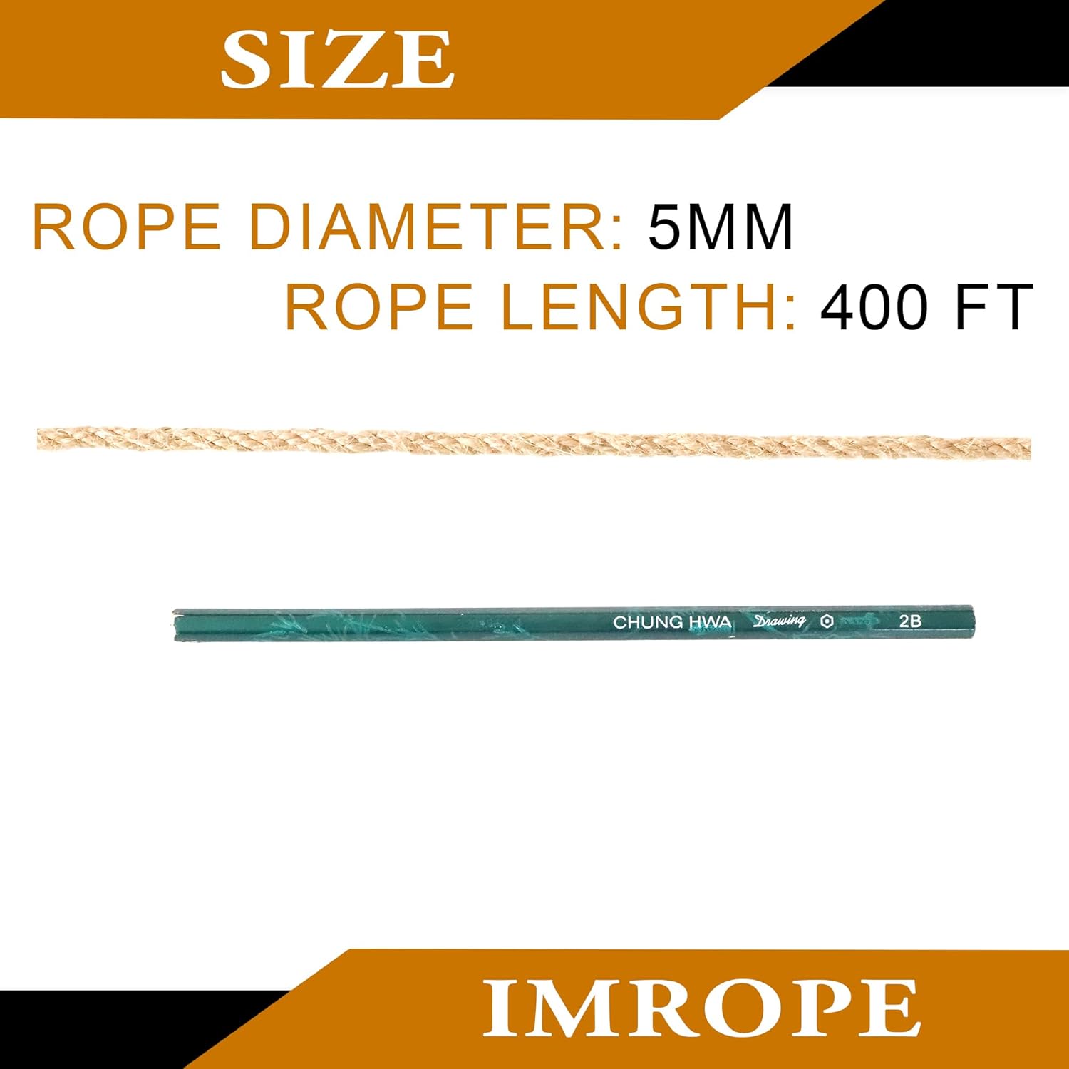 5mm x 400 Feet Natural Jute Rope, Twine for Gardening Tomato Climbing Plant Tie Floristry Crafts Gift Wrapping Packing Decor