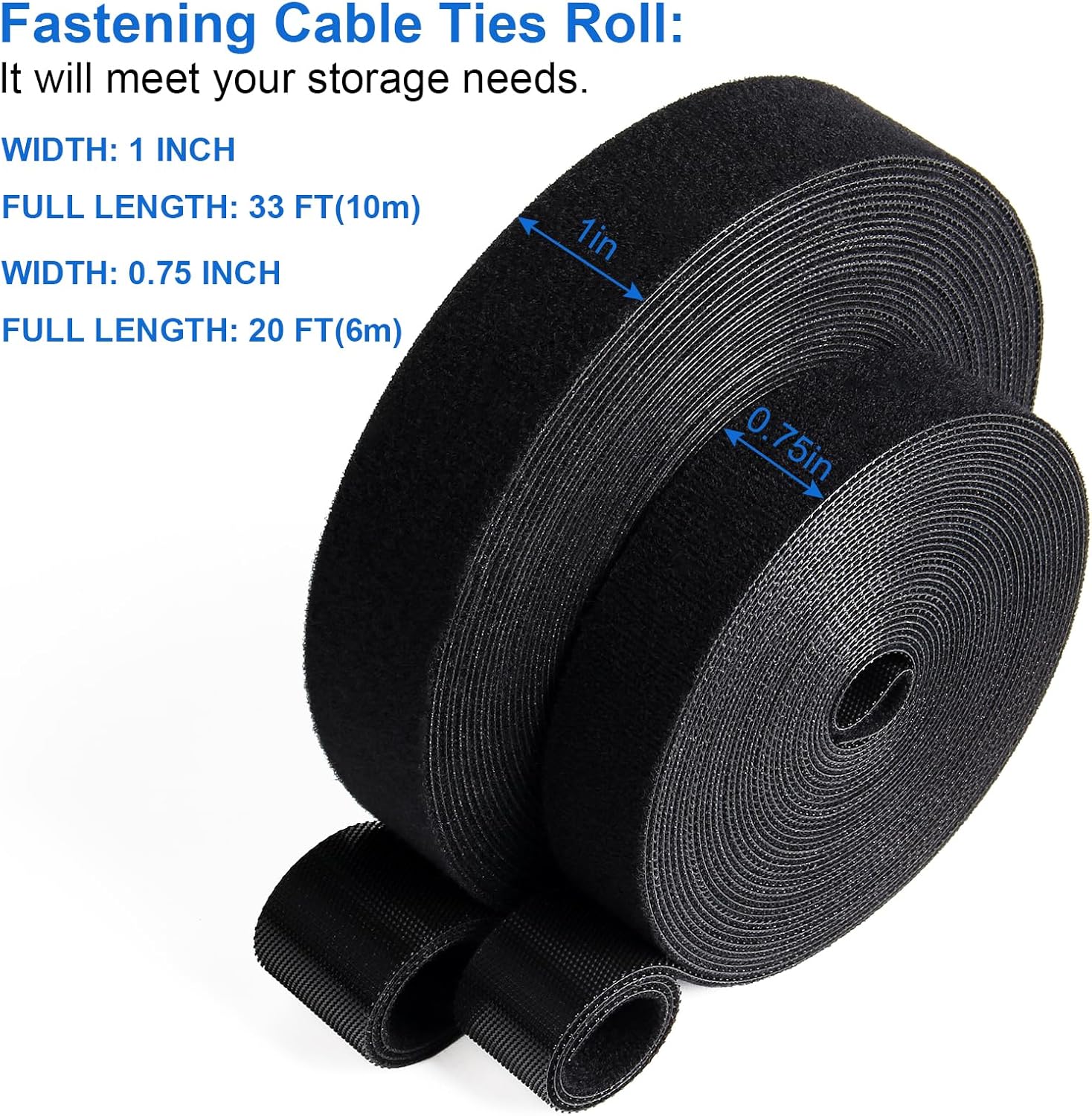 - FREE-CUTTING: Our cable tie roll is 43ft long x 3/4 and in wide and 33ft long x 1in wide. You can cut freely to get the size you need. It must be great for storage.