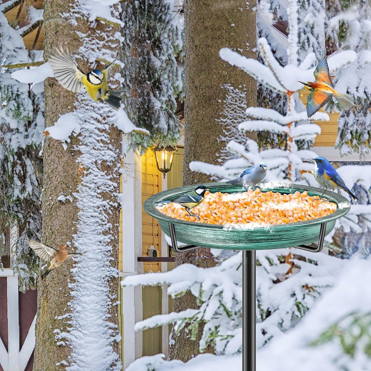 Bird Baths for Outdoors, Detachable Birdbaths for The Garden Clearance, Heavy Duty Freestanding Bird Baths, Bird Bath Bowl Spa & Birdfeeder with Metal Stake Stand (Retro Green)