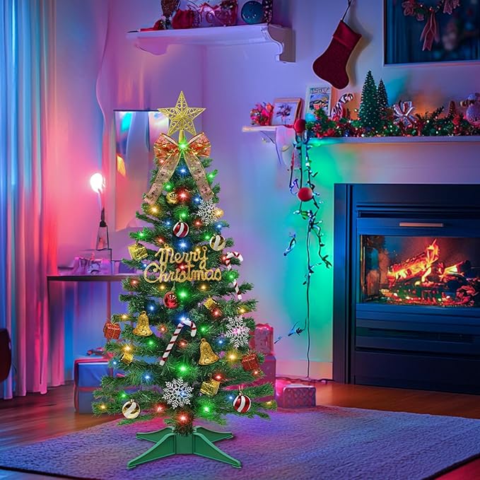 - Materials: Christmas tree and ornaments are made of PVC, waterproof, moisture proof, flame retardant, ornaments weighing light, making it suitable for both indoor and outdoor decoration; Safe for use in homes with kids and pets