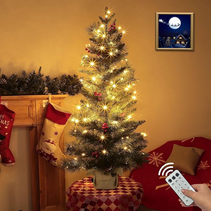 - Widened Base Anti Tipping: Widened 4.3 Inch (11 cm) burlap buttress base is not easy to tip over; Keeping the Christmas tree with lights firmly to be suitable decors for your living rooms, hallways, bedrooms, Xmas decor deck indoor outdoor