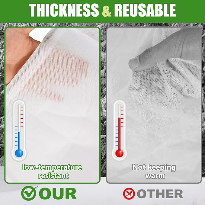 - Quality materials - Shrub covers crafted from 80 grams of heavyweight non-woven fabric that is lightweight, comfortable and breathable. Compared to standard 50 grams of shrub covers, this premium quality material offers greater durability and can be reused to provide long-lasting protection for your plants