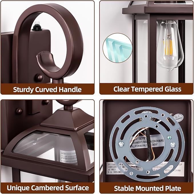 - ๐๐ซ๐ญ๐ข๐ฌ๐ญ๐ข๐ ๐๐ซ๐จ๐ฐ๐ง ๐๐จ๐ซ๐๐ก ๐๐ข๐ ๐ก๐ญ๐ฌ ๐๐ง๐ญ๐ข-๐๐ฎ๐ฌ๐ญ ๐๐ฅ๐ฎ๐ฆ๐ข๐ง๐ฎ๐ฆ ๐๐๐๐: Different from others made of iron, these bronze outdoor sconces photocell choose high quality aluminum in aim for longer use and more rugged. Delicate craftsmanship of cambered clear glass and curved handle at the top easily takes your home to next level.