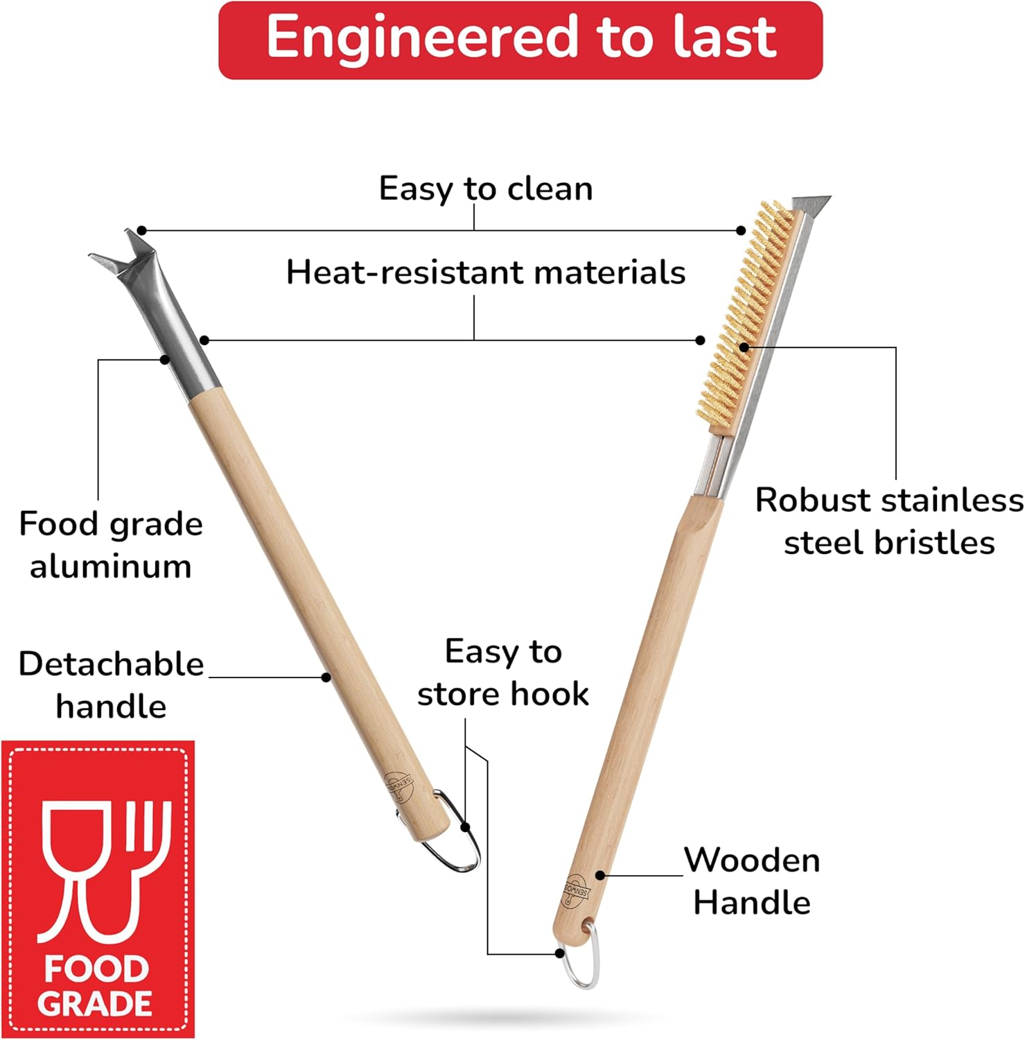 - Durable Materials: With heat-resistant, robust stainless steel bristles and food-safe aluminum, the set promises exceptional performance and longevity, ensuring the tools withstand rigorous use and high temperatures.